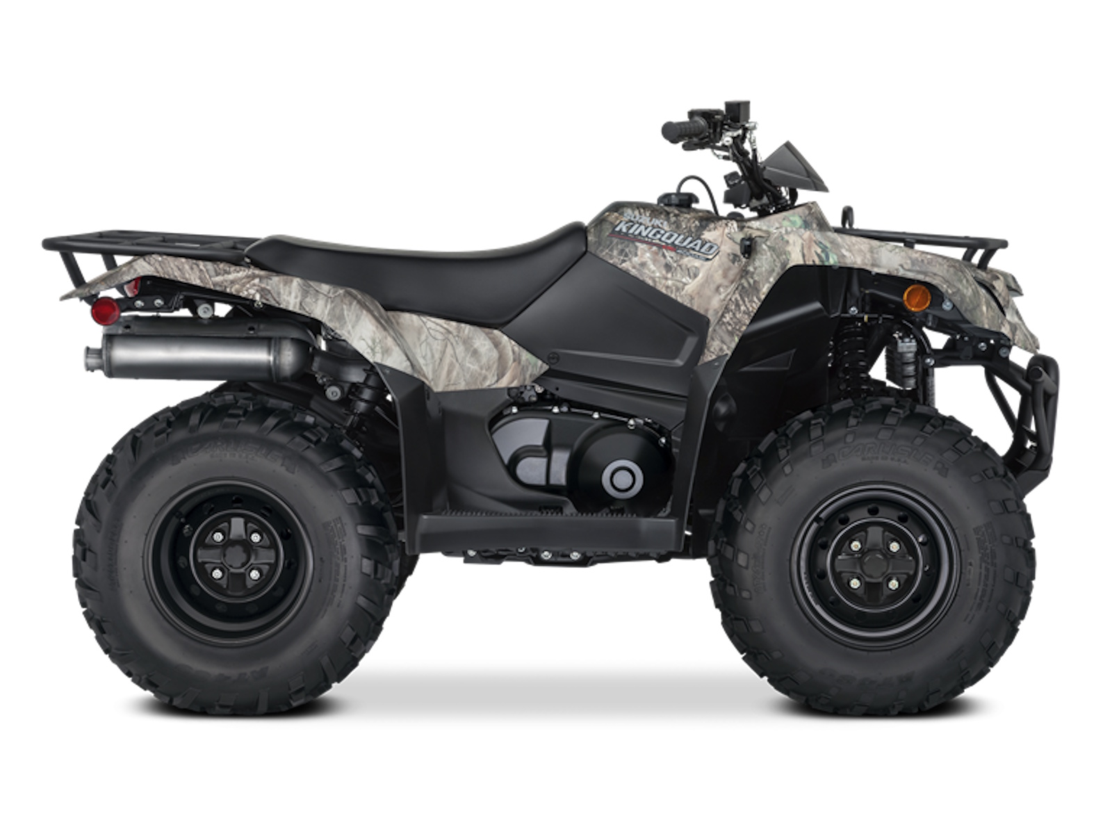 - Dual 35-watt headlights (with high- and low-beam settings) are part of the distinctive KingQuad grille appearance. Bright taillight helps make the 400ASi Camo more visible in dark conditions.