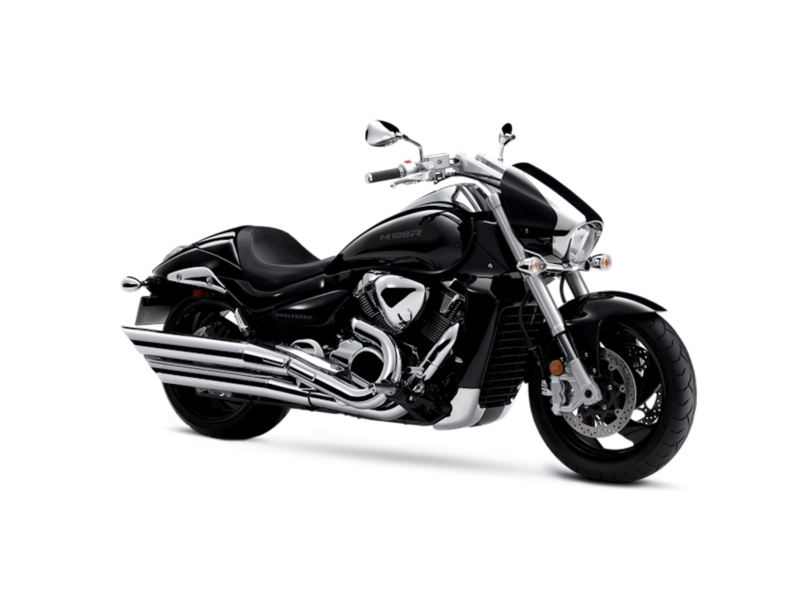 The deep Glass Sparkle Black paint is highlighted by deep chrome applied to the edge of the fork-mounted headlight nacelle and through to the imposing dual-muffler exhaust. The M109R is so visually stunning that it draws attention away from everything else on the road. This bike is not just about looks, as a stout inverted fork, a hidden single-shock rear suspension, and an ideally designed saddle deliver responsive handling and an exceptionally comfortable ride. Performance never looked so good, or so bold.