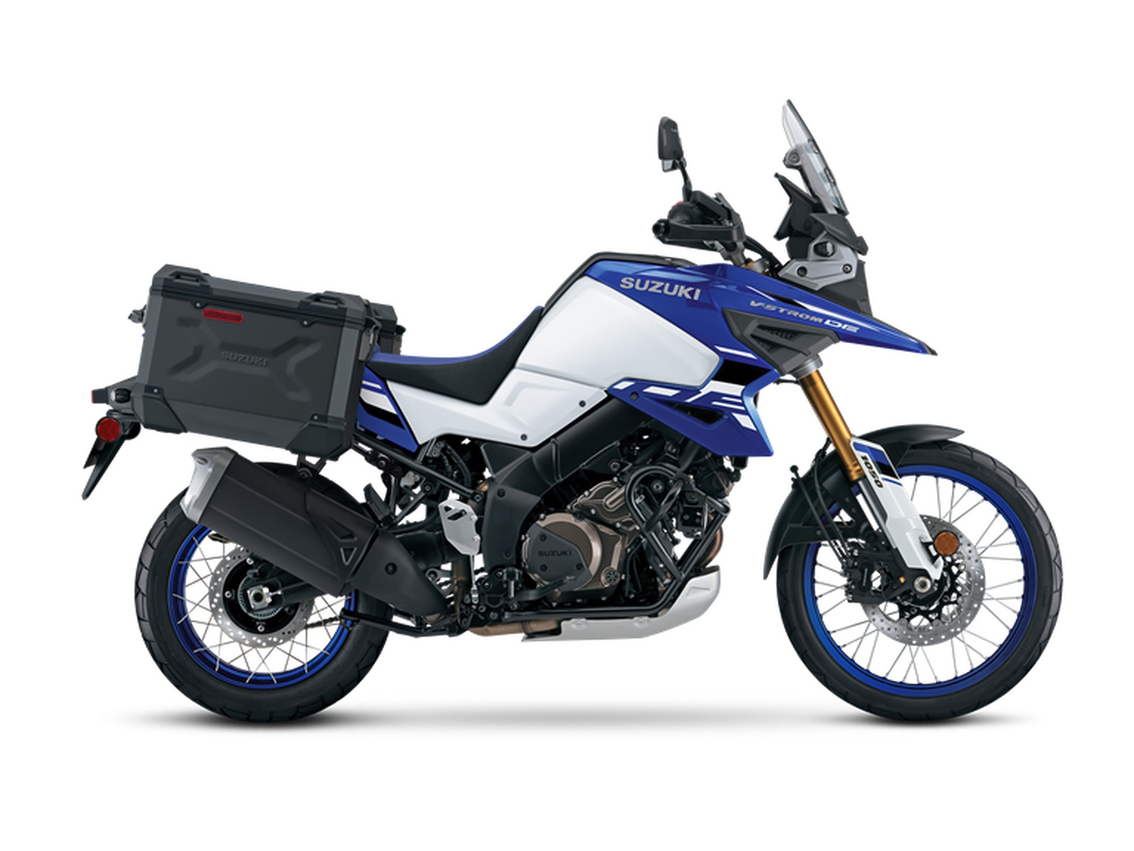- The V-STROM 1050DE Adventure’s standard panniers and accessory aluminum top cases have a sturdy lock and latch system that use a different style key that does not match the motorcycle’s ignition key.