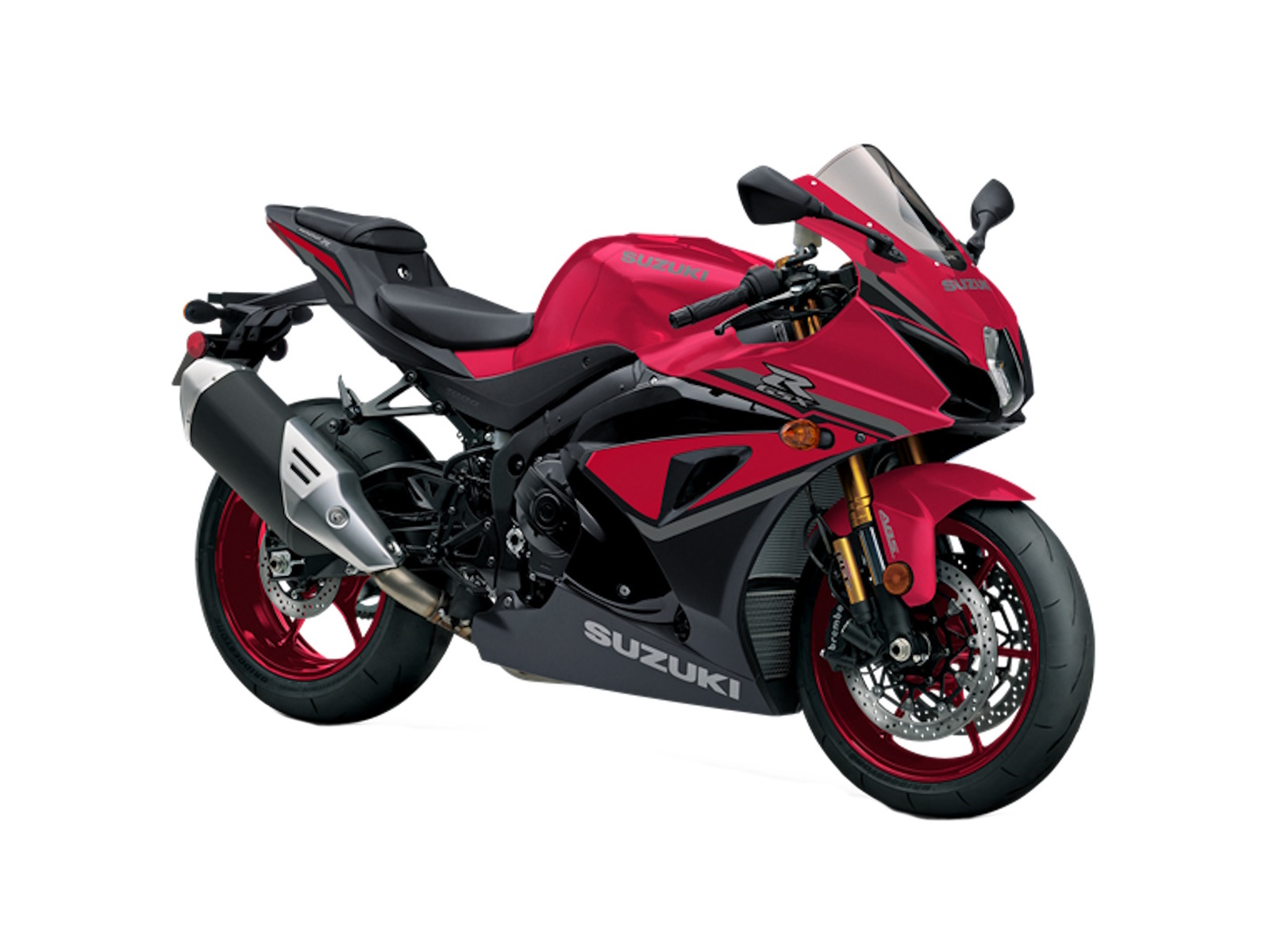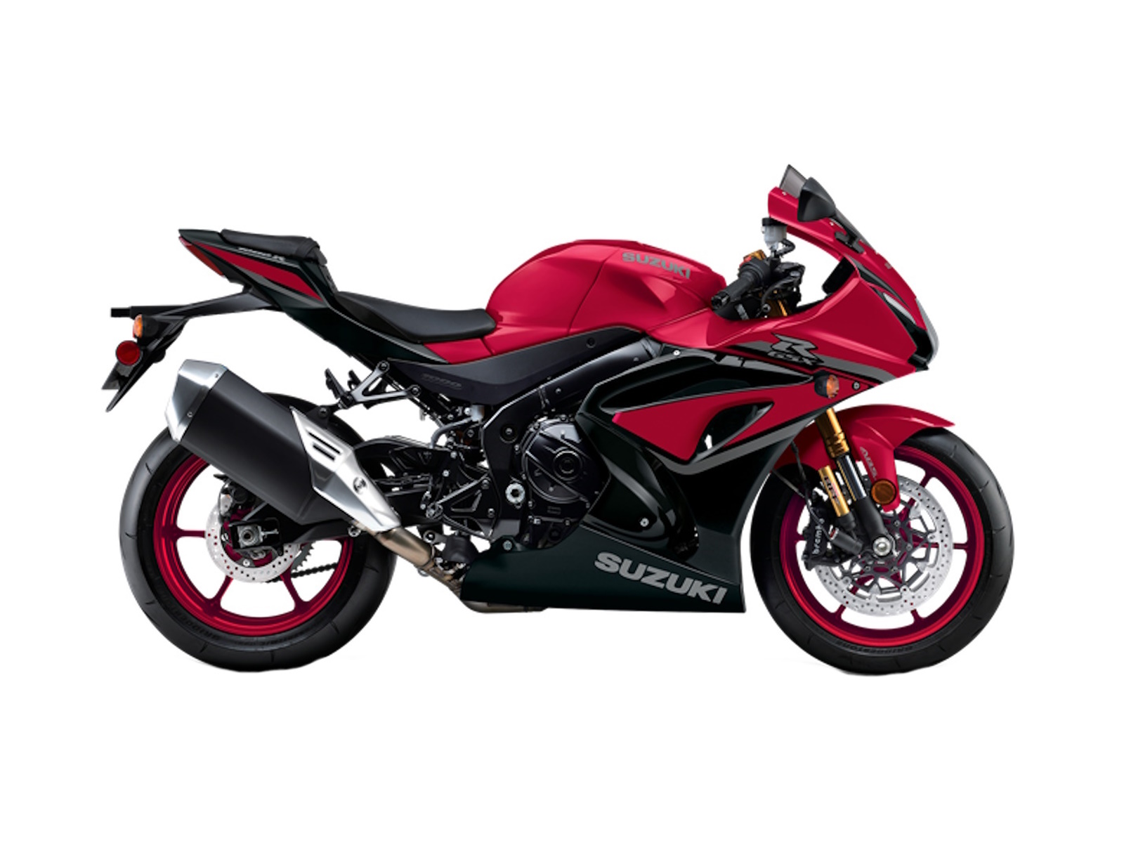 - The 2025 GSX-R1000R is available in a new Candy Daring Red / Glass Black paint scheme with dark red wheels or a stunning Metallic Matte Sword Silver scheme with bright blue graphics on the fairing and black wheels.
