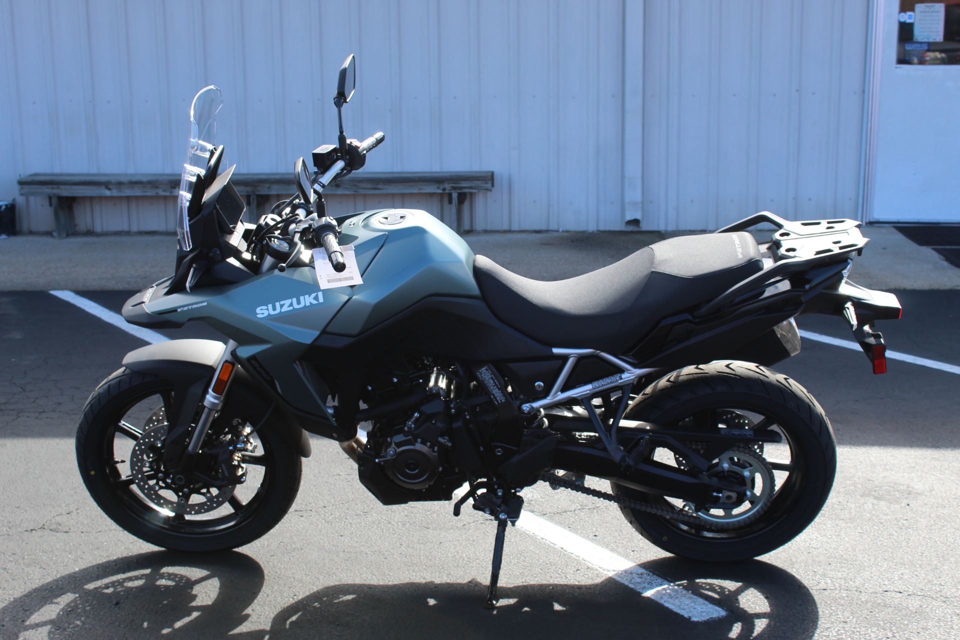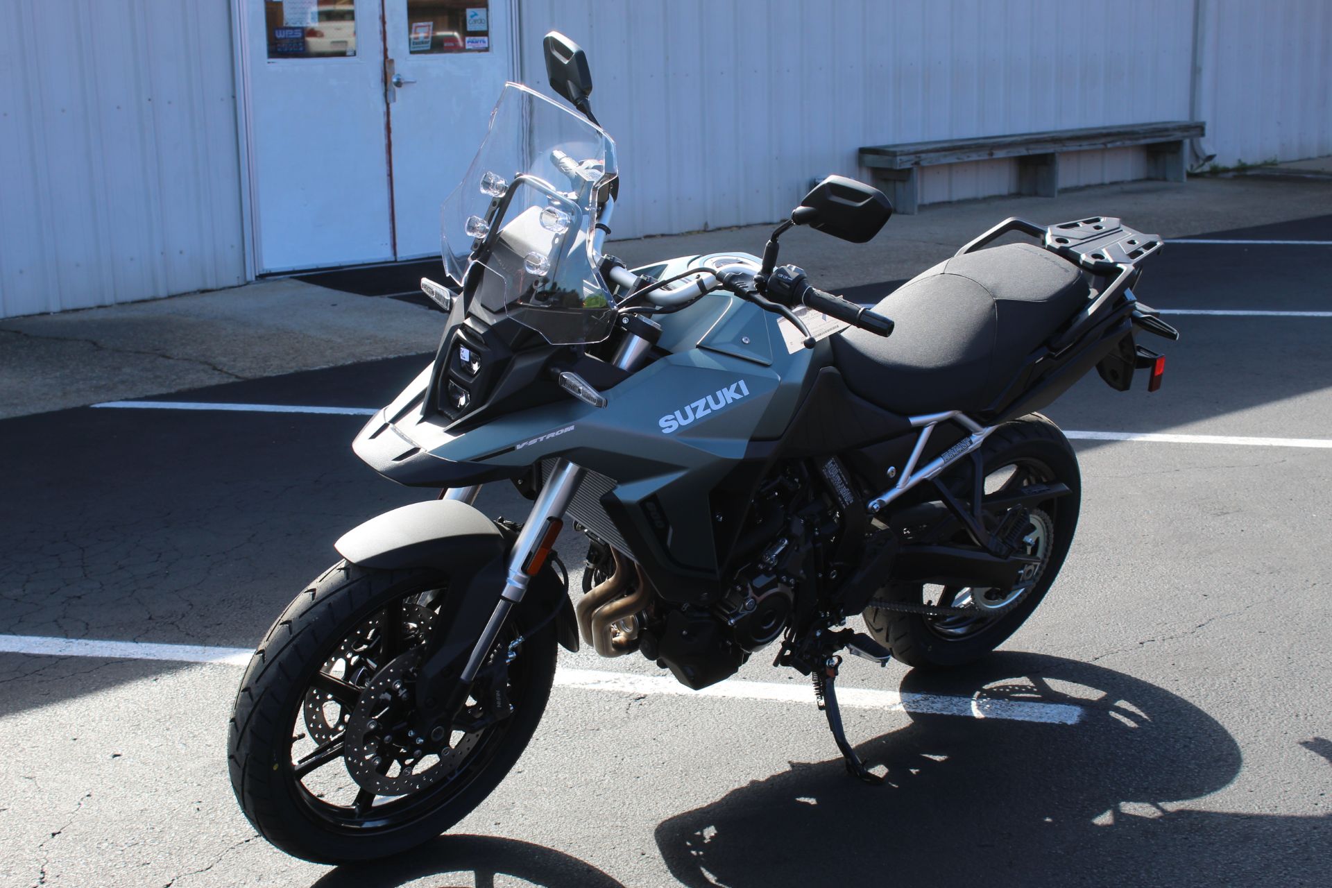 - Visually stunning, the angular bodywork retains Suzuki’s distinctive Adventure “beak” and arrives in the unique Metallic Matte Steel Green color, topped with modern, subtle graphics.