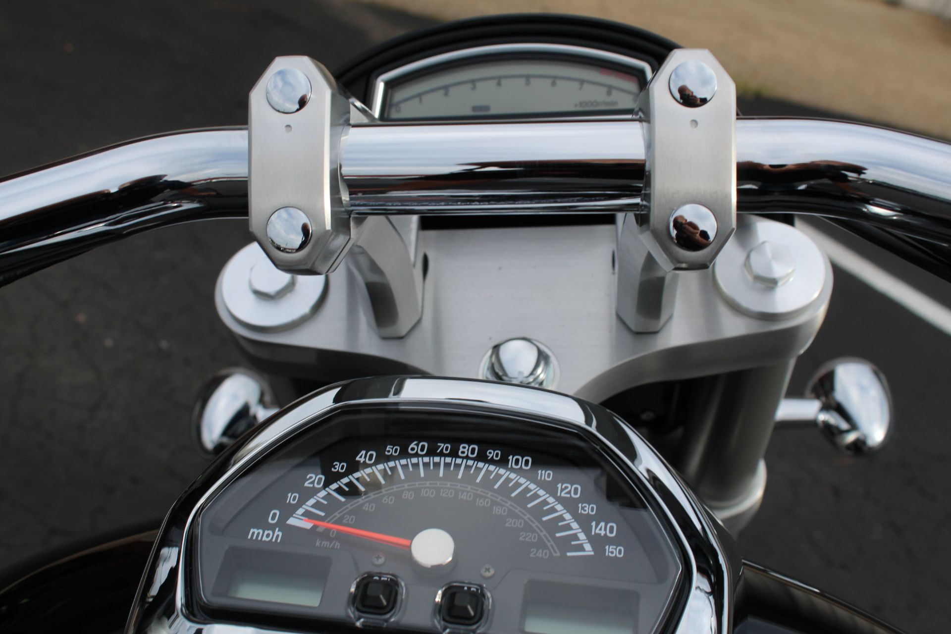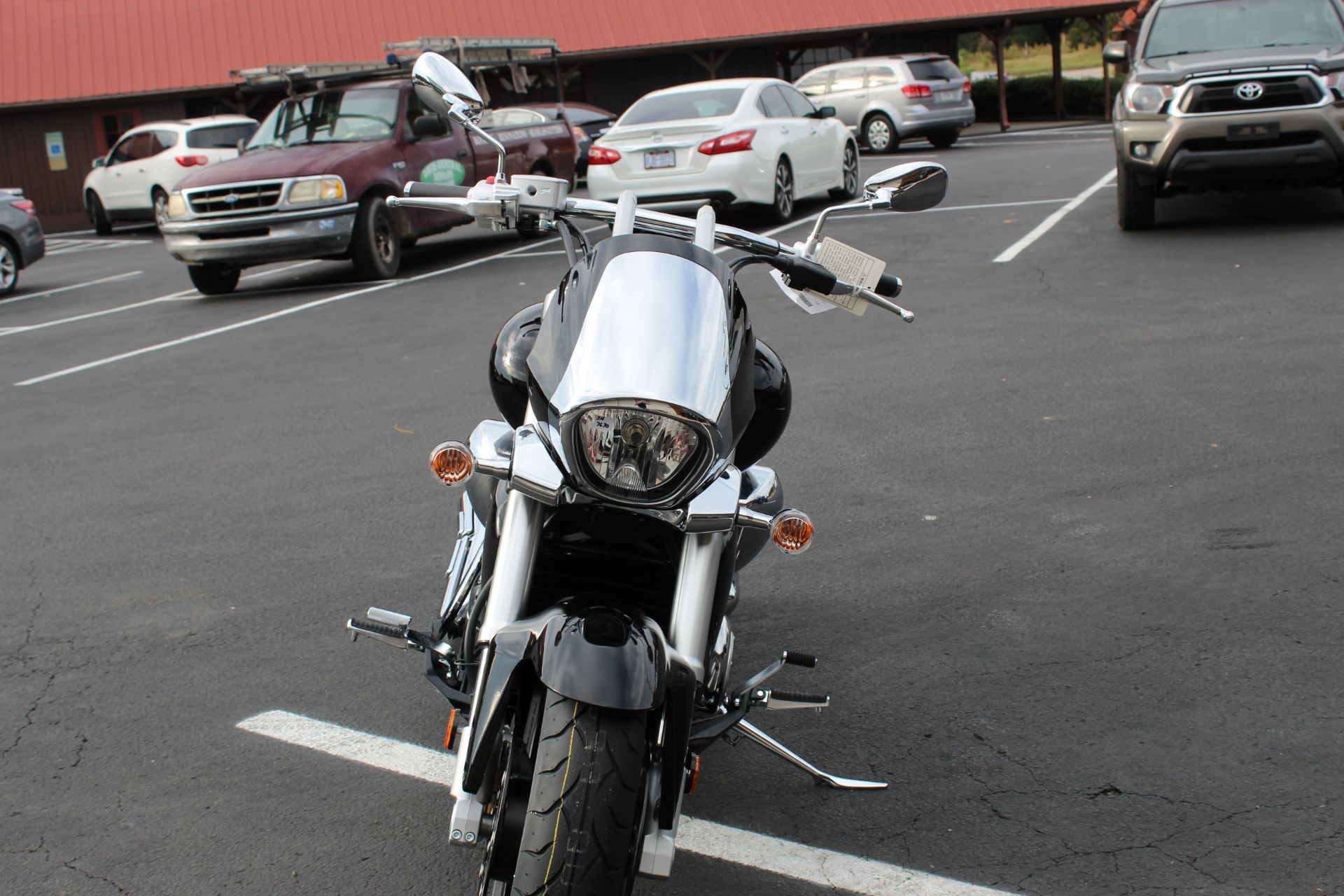 The deep Glass Sparkle Black paint is highlighted by deep chrome applied to the edge of the fork-mounted headlight nacelle and through to the imposing dual-muffler exhaust. The M109R is so visually stunning that it draws attention away from everything else on the road. This bike is not just about looks, as a stout inverted fork, a hidden single-shock rear suspension, and an ideally designed saddle deliver responsive handling and an exceptionally comfortable ride. Performance never looked so good, or so bold.