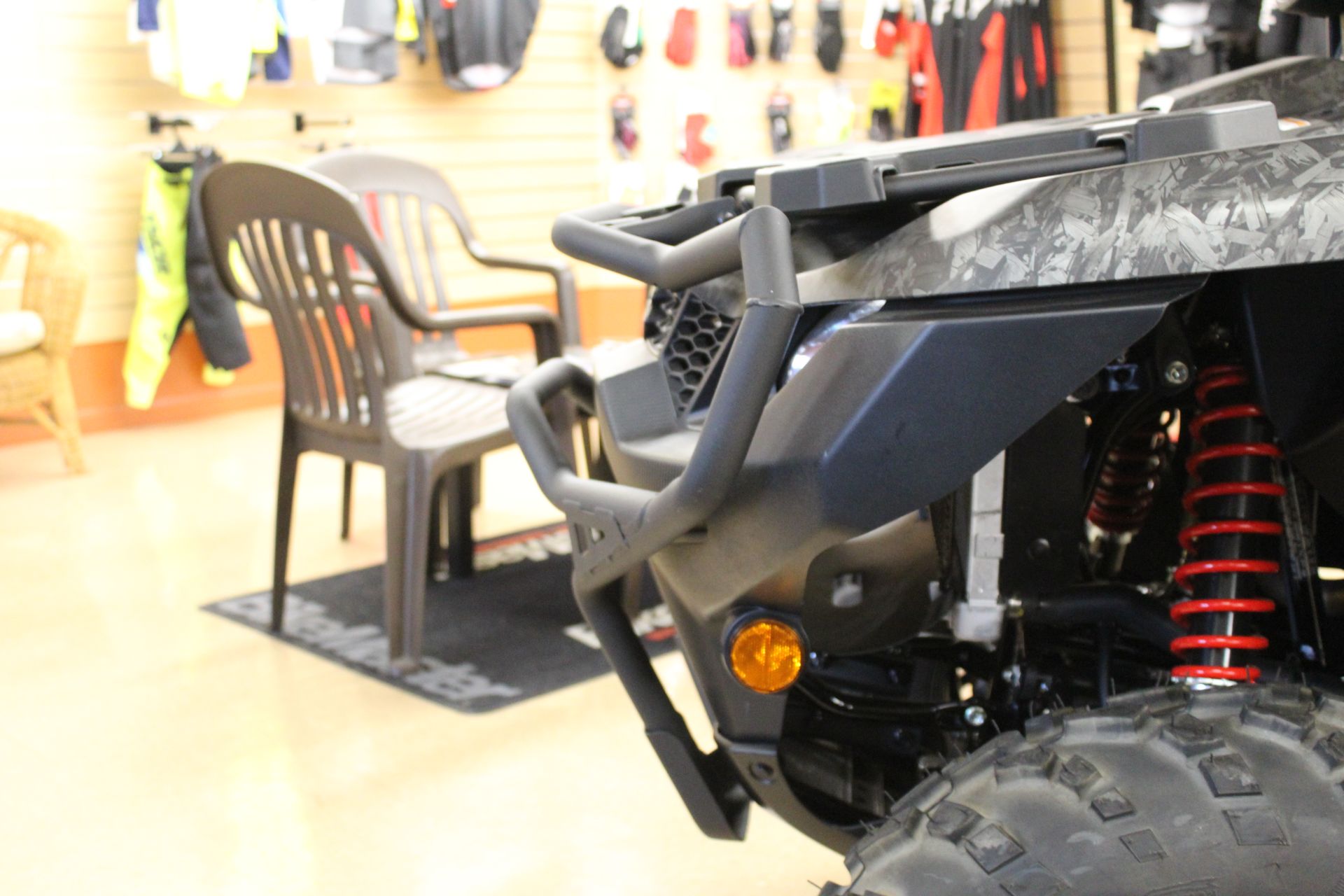 - The rugged front and rear steel-tube cargo racks have wrinkle paint finish for durability and scratch resistance.