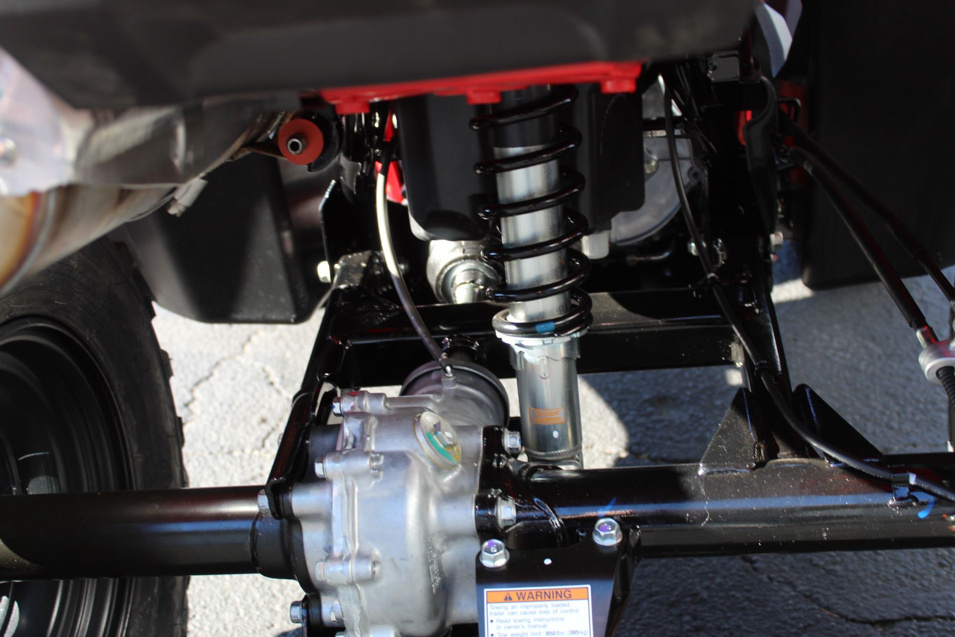 Front - Independent double-wishbone; 6.7 in. travel Rear - Swingarm with single shock; 6.7 in. travel