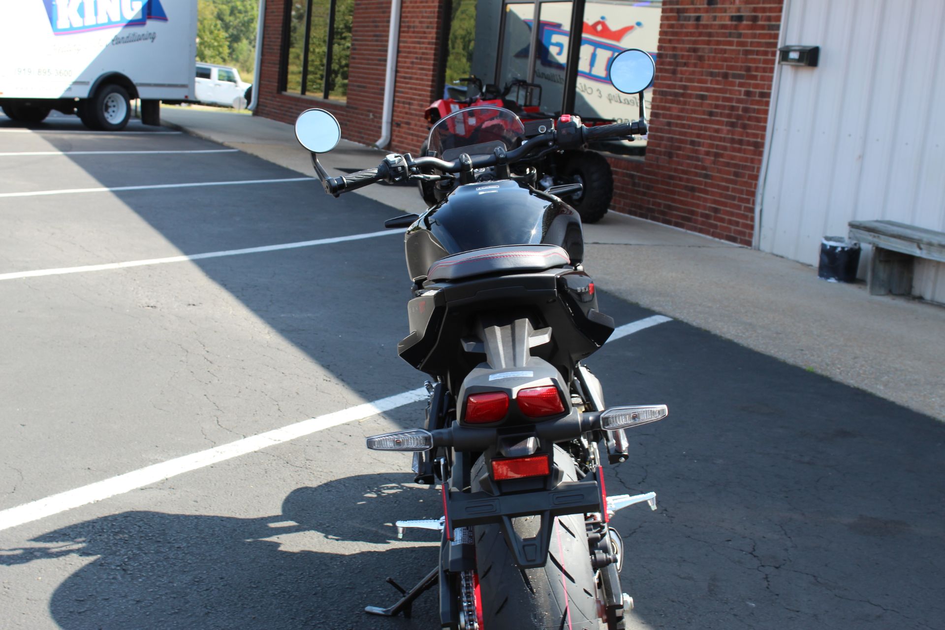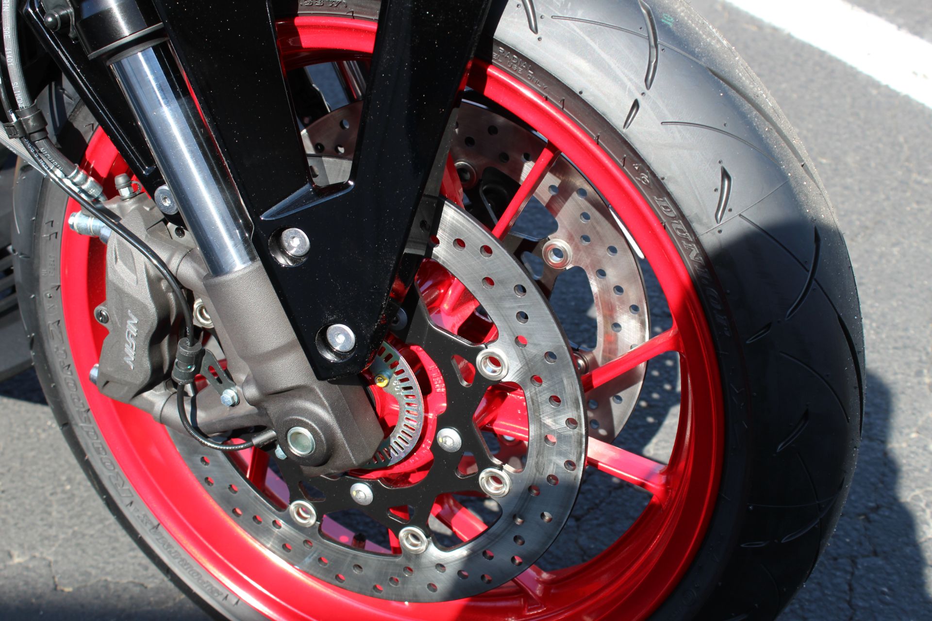Front - NISSIN, Radial-mount 4-piston calipers, twin disc, ABS-equipped Rear - NISSIN, 1-piston caliper, single disc, ABS-equipped