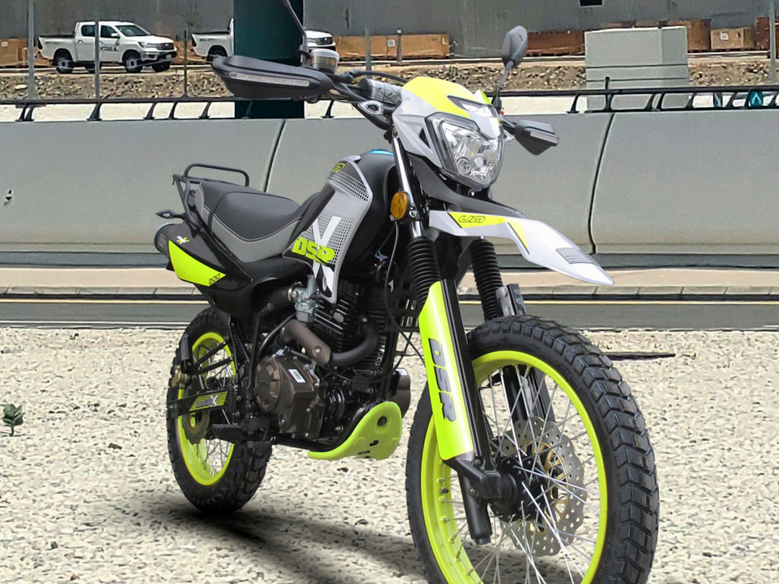- Design: The new DSRX is anything but subtle. Its modern design, with aggressive graphics, vibrant rims, and sharp lines, reflects an irreverent, ready-for-anything attitude. Whether cruising through the city or devouring trails, it always looks imposing. It's a motorcycle that screams adventure, even when it's stationary.
